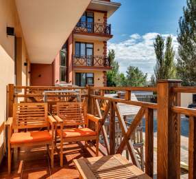 Отель находится на предельной близости одного из самых широких песчаных пляжей Крыма, что позволит насладиться ласковым морем, нежным песком и незабываемыми закатами Западного побережья Крыма.